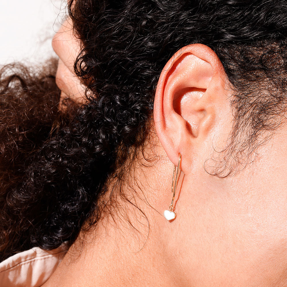 Elegante øreringe (sæt a 2 pcs.) med et klassisk hjerte i perlemor som fin detalje. Enkle og smukke både til hverdag og til særlige anledninger.