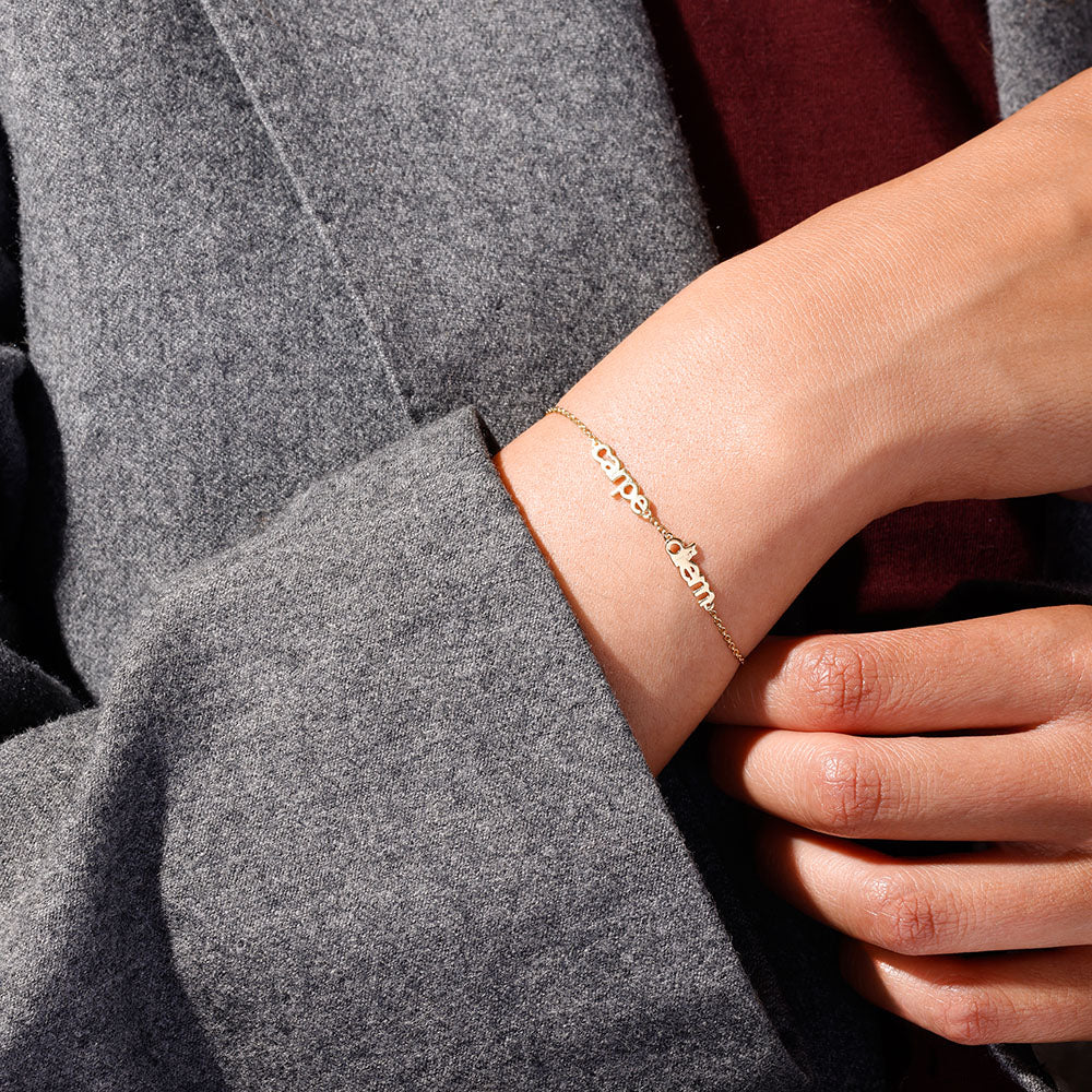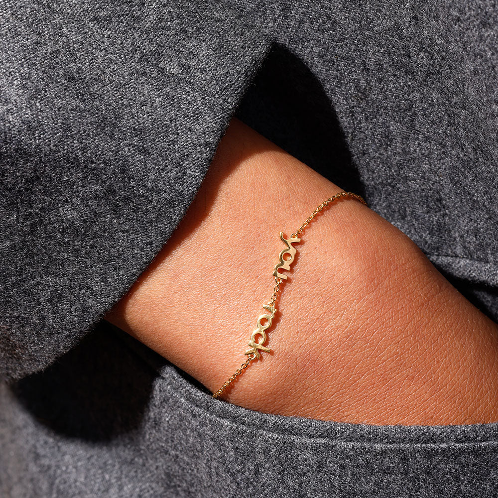 Fortæl en historie om dig selv og de vigtigste personer i dit liv med dette fine grafiske armbånd. Brug det alene eller stacked med andre armbånd.